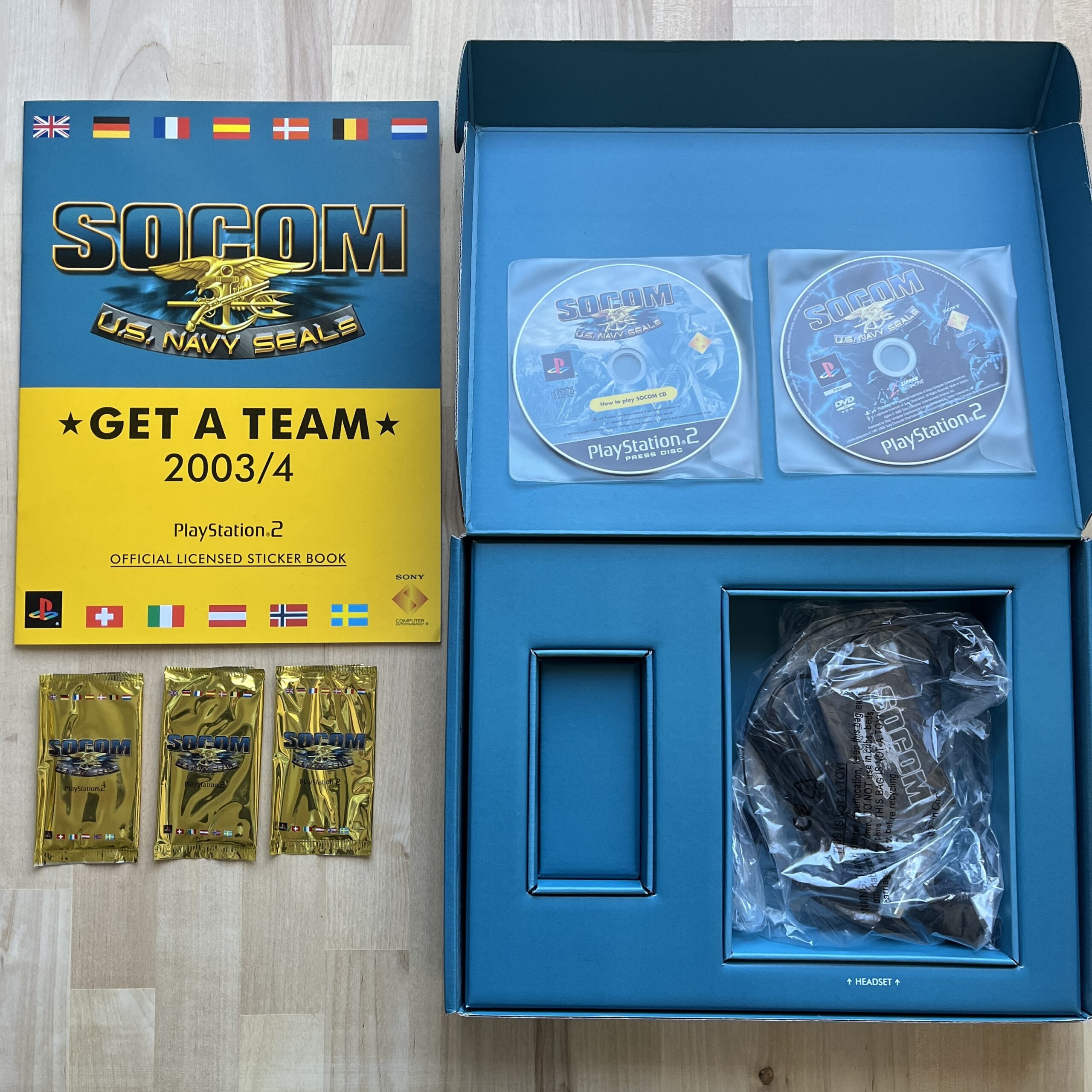 Socom collector box from 2003 – PS2 European edition – every cd, cards and headset is sealed.